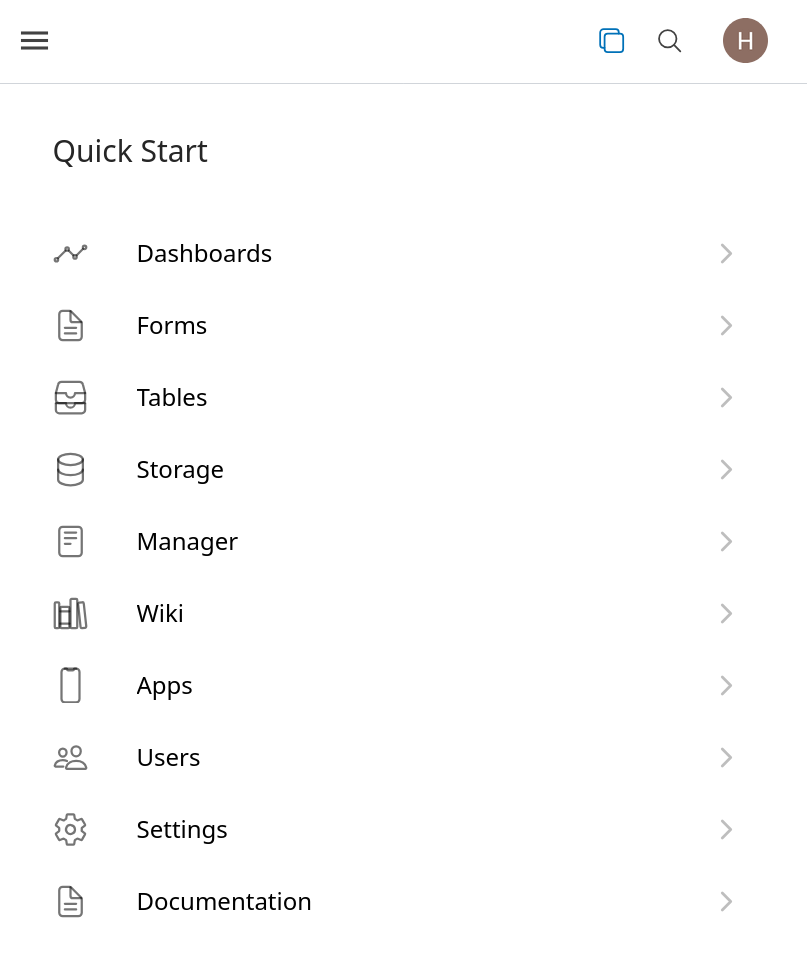 The structures of a project include storage (folders), tables (columns and structure), forms, and dashboards for visualization.&#x20;