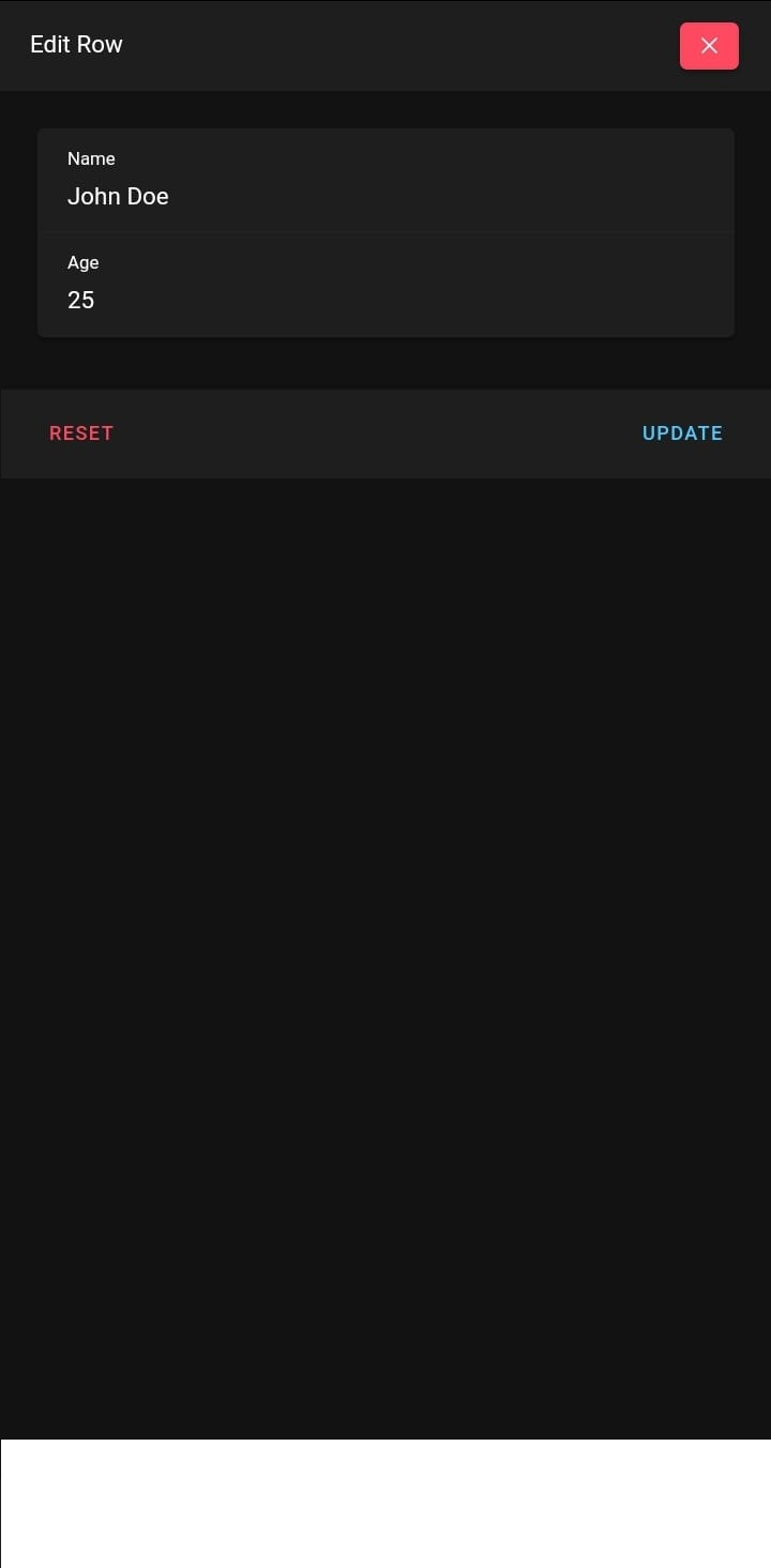 Make any necessary changes and update the row or data entries.