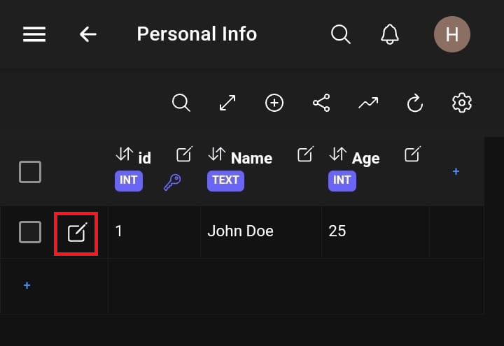 Select the edit row button