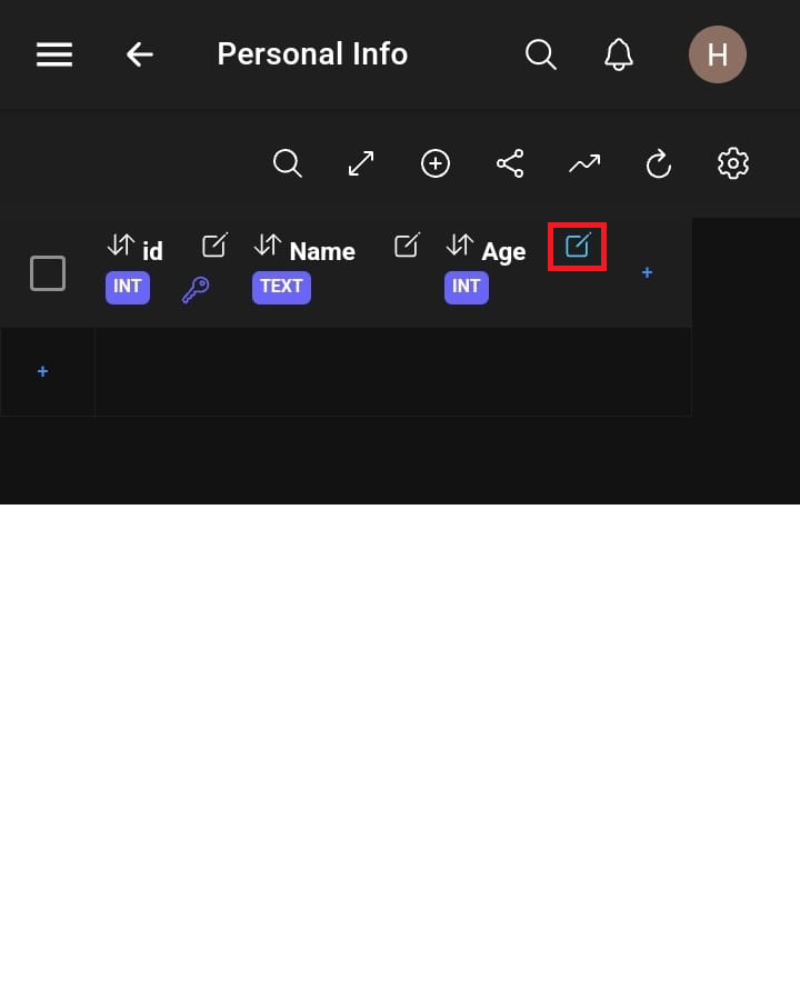 To update or alter a column select the edit button.