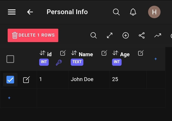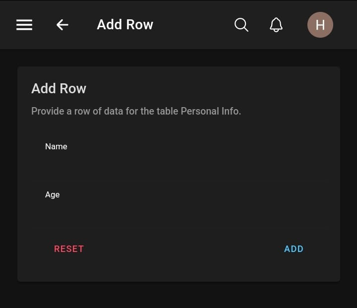 To add a row, one must provide data for the columns. Note that the row number or primary key is handled in the background.