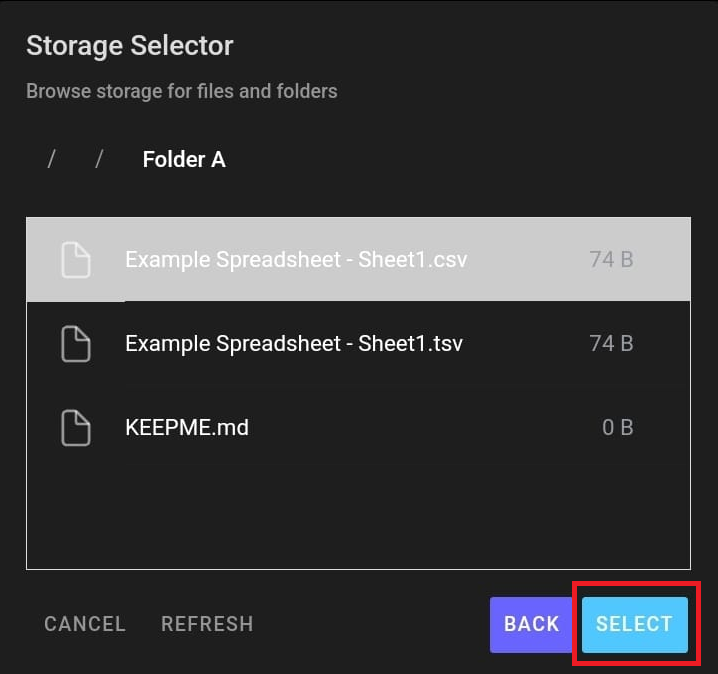 Press select to import an appropriate csv file.