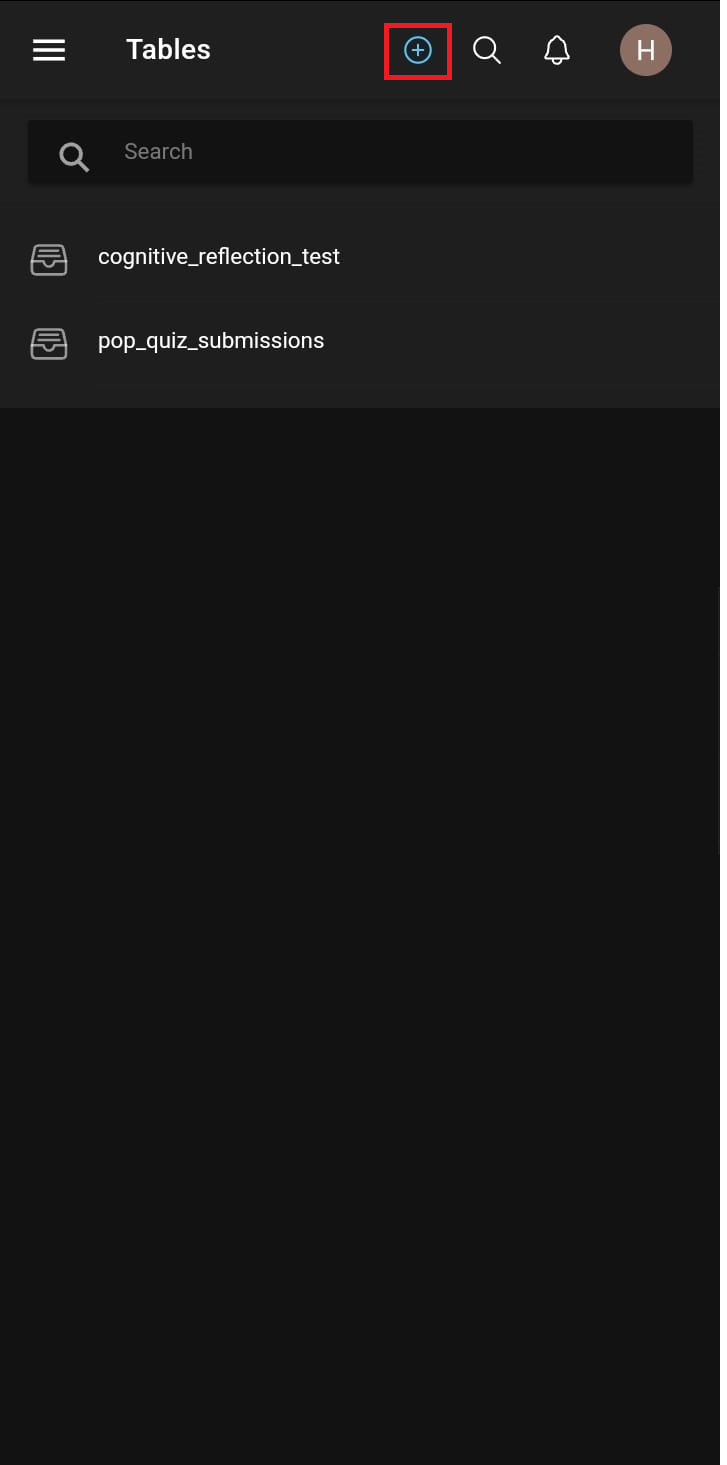 One can create a new table from the page that lists the existing tables inside a project.